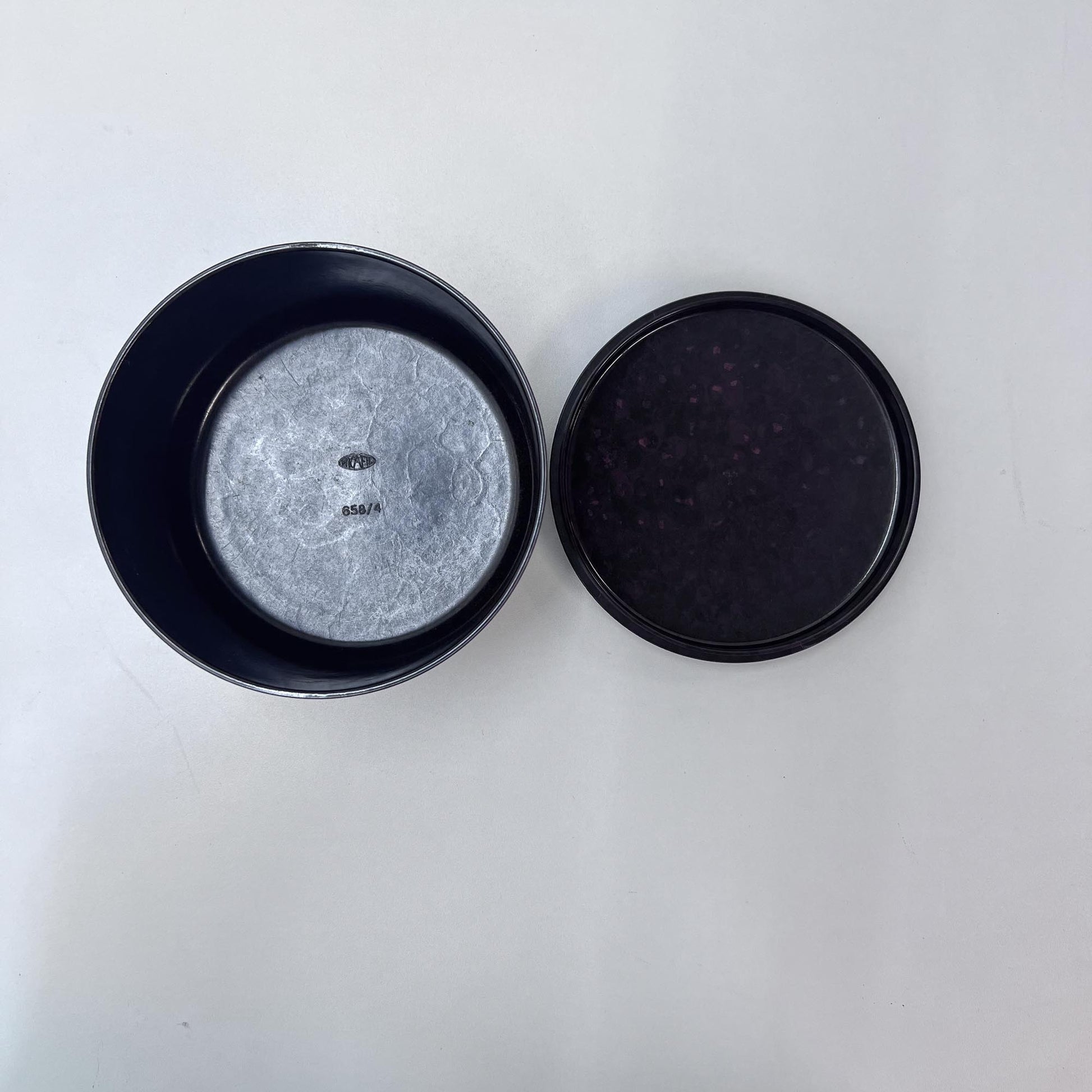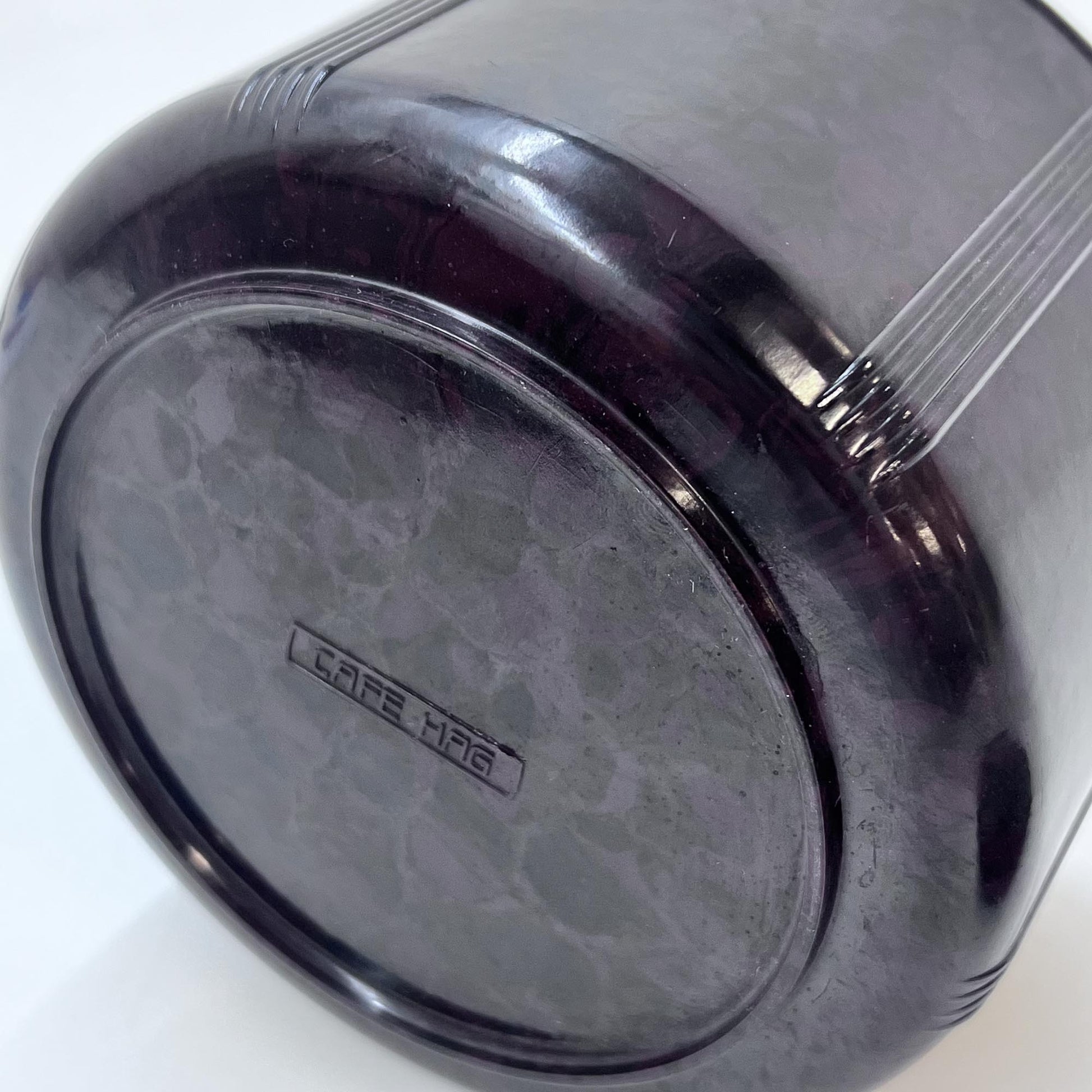 Beschreibung: Cafe-Dose von Cafe Hag aus Bakelit, dem Vorgänger von Plastik und Pet, Gravur am Boden